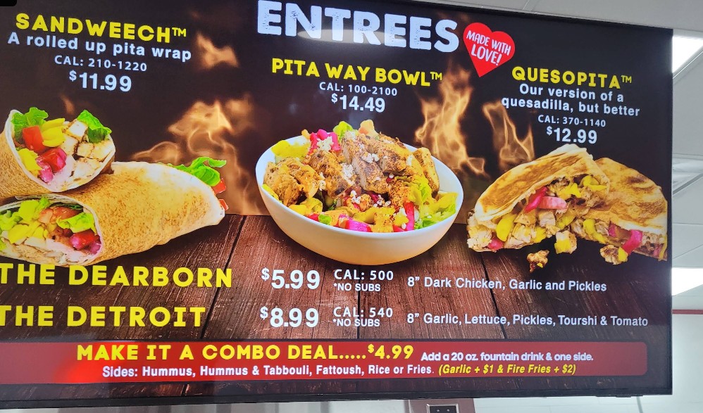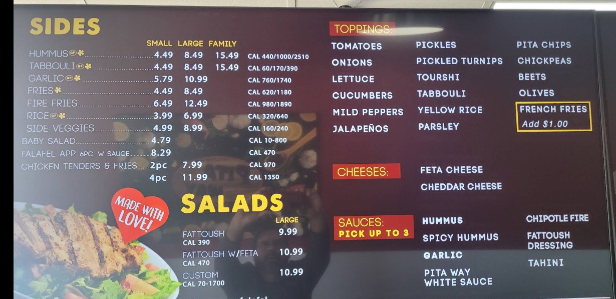 The Pita Way Restaurant menu features a wide selection of fresh Mediterranean dishes made to order. From flavorful shawarma and grilled chicken bowls to signature wraps, rice plates, and crisp salads, Pita Way is known for bold flavors and customizable options. Whether you are dining in, taking out, or ordering for delivery, the Pita Way Restaurant menu offers something for everyone looking for healthy, fast, and satisfying Mediterranean cuisine in Ann Arbor.